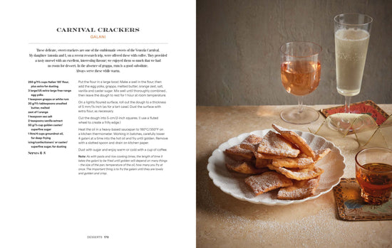 Transport your taste buds to the Veneto through evocative recipes such as Radicchio Rose di Treviso, Carpaccio di Pesce, Fig and Prosciutto Chicchetti, Spicy Polenta Lasagne, Risotto ai Frutti di Mare and the traditional Venetian Tiramisu.