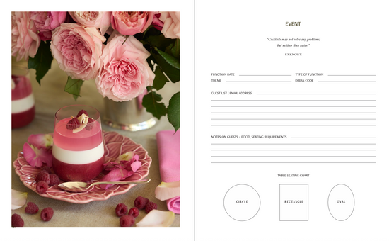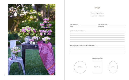 As we travel through the seasons of life we collect ideas and inject moments of beauty into our lives. These thoughts and ideas need a home of their own. This Entertaining Journal is a place where moments created can be recorded and cherished; a place to preserve the essence of special occasions.