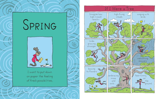 From the cloud-gazing hours of early spring to the lost bicycles of late autumn, Grant Snider’s brilliantly illustrated Poetry Comics will take you climbing, floating, swimming, and tumbling through all the year’s ups, downs, and in-betweens. He proves that absolutely everything, momentous or minuscule, is worthy of attention, whether snail shells, building blocks, the lamented late bus, or the rare joy of unscuffed shoes. These poems explore everything you never thought to write a poem about, and they’re so fun to read you’ll want to write one yourself. Not to worry, there’s a poem for that, too!