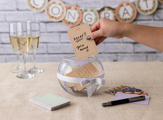 Set the notepad out to encourage well-wishers at a retirement party, place it at a desk for coworkers to fill out as a send-off, or circulate it among friends and family to collectively create an easy DIY retirement gift. Inside are 30 charming tear-away notes that can be filled out and handed to the retiree, collected in a beautiful box or sweet mason jar, or framed to display at a retirement party for the honoree.Â